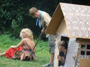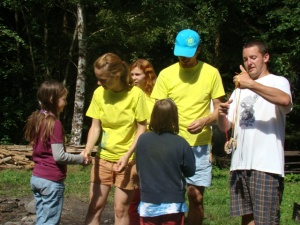 Před večeří děti shlédly hrané dvě pohádky, které jim zahrály děti ze školy z Bystrého. Dnes nás trošku potrápilo počasí svou děšťovou přeháňkou, nakonec se umoudřilo a některé oddíly vyrazily po večeři na spaní do přírody, jiné si poseděly u oddílového táboráku.