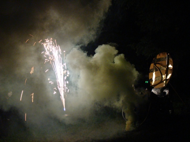 Při programu u táboráku a výstupu kouzelníka Pokustóna nás navštívil alchymista, který jednotlivým družinám poděkoval za navrácení myšlenek a paměti, aby mohl zpátky odcestovat. Na oplátku alchymista daroval dětem poklad, který si ovšem musely najít. Zástupce z každé družiny si vyzvedl u alchymisty první indicii a podle instrukcí dále děti postupovaly. Postupně je všechny dovedly k pokladu, který alchymista ukryl pod mostkem. Po rozdělení pokladu jsme došli k časostroji, kde nám alchymista zamával a odletěl. Ve chvíli, kdy odletěl, se na obloze objevila létající světla. Nechal nám dokonce na místě časostroje lahvičku s rokem 2012.